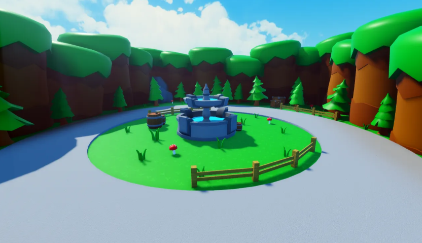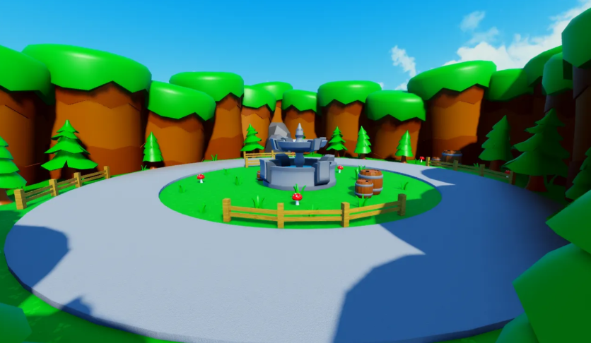 A minimalist low-poly hub designed for lobbies, featuring:
