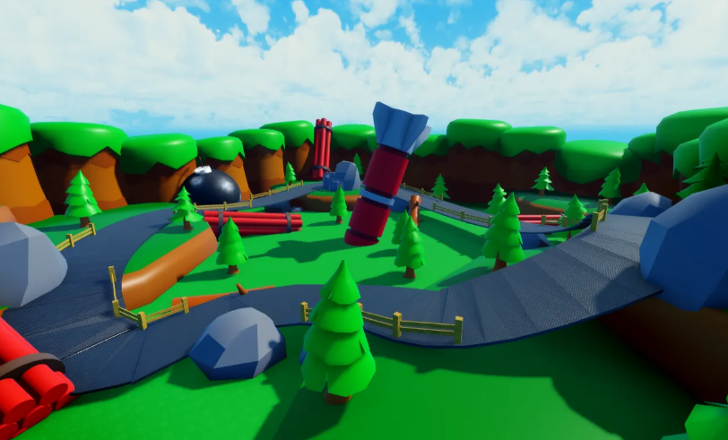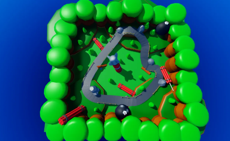This TNT-themed map embraces the beauty of simplicity through its expertly crafted low-poly aesthetic. The clean geometric shapes and smooth, angular terrain create a visually striking environment where every explosion feels impactful.