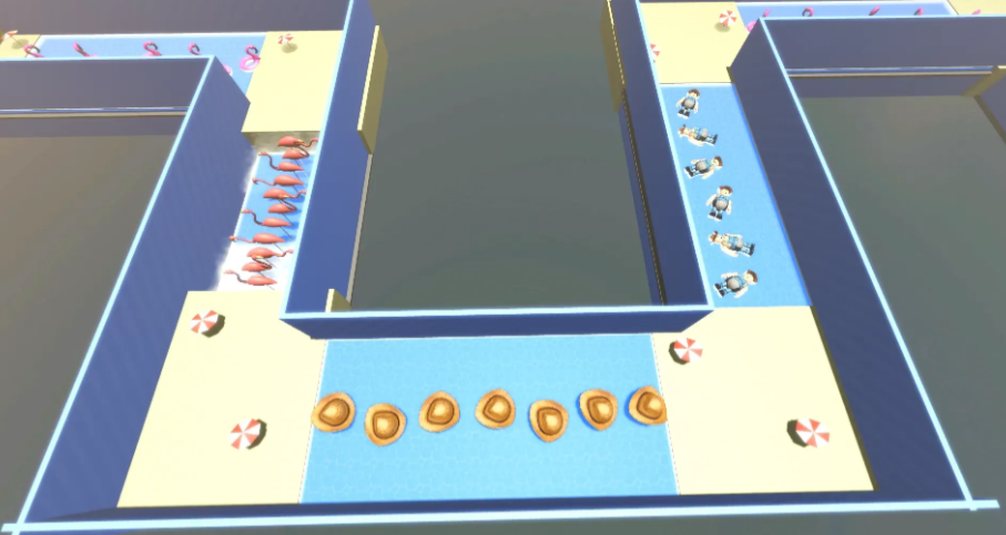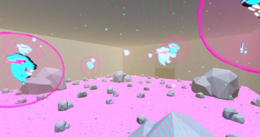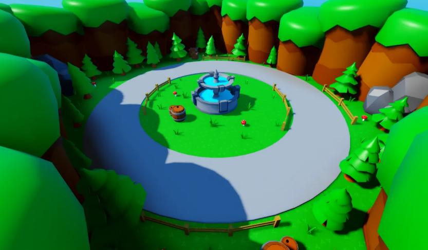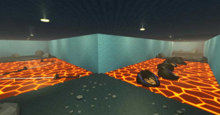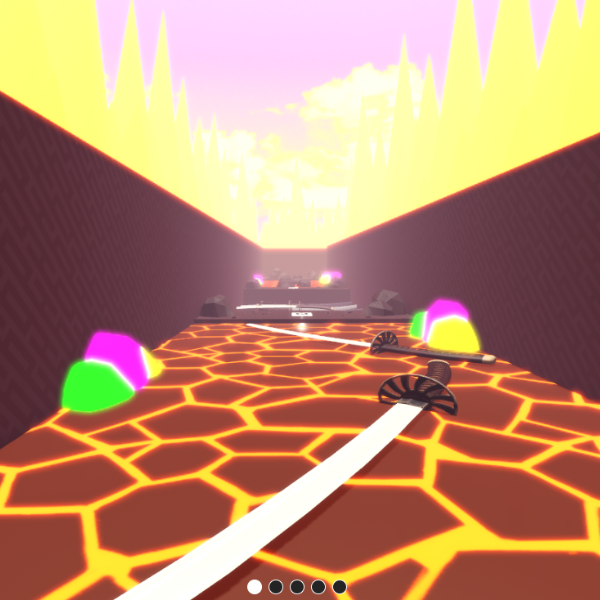 At the end of every stage, complete a short parkour to press a red button that opens the next area — scripting required.